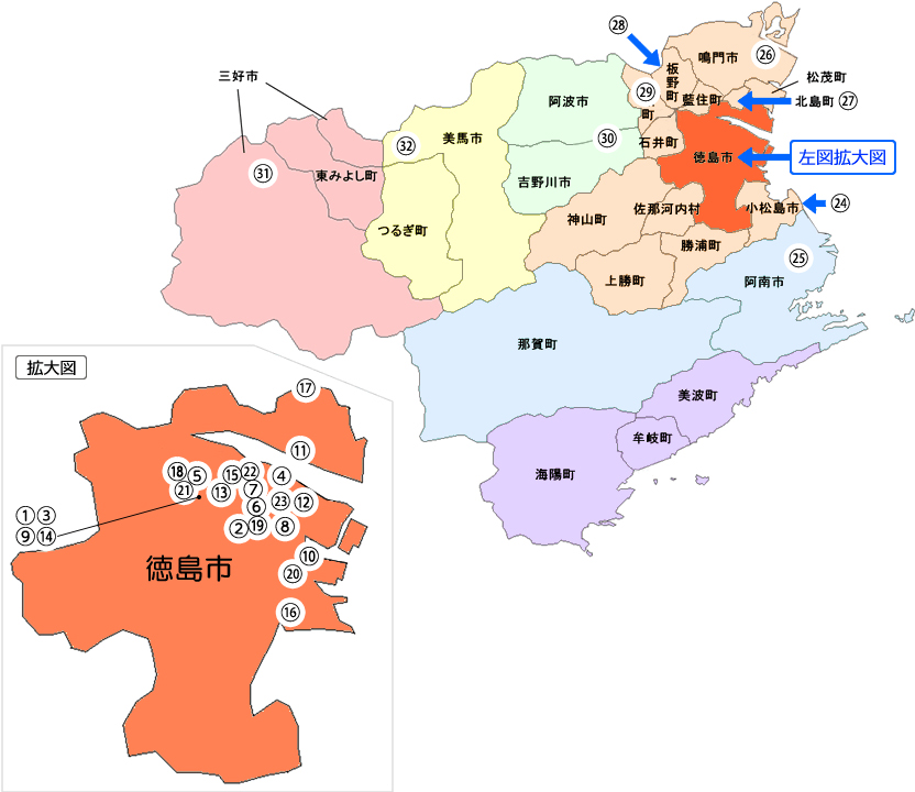 | 11 | 松村病院 | 徳島市川内町鶴島162 088-665-3233 |
